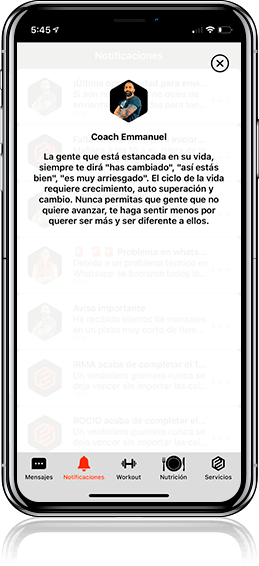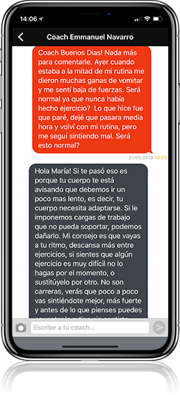 ¡Por supuesto! No somos como cualquier aplicación. Nuestra filosofía es que para que obtengas resultados, debemos acompañarte durante todo el proceso. Tendrás un chat personal con el entrenador y nutriólogo para que le hagas las preguntas que quieras y tengas la mejor ayuda posible para que logres tus objetivos.