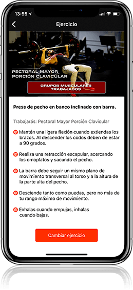 ¿Necesitas orientación y motivación en tu rutina? El entrenador virtual te irá guiando paso a paso, explicándote los ejercicios y motivándote a seguir hasta terminar tu entrenamiento.